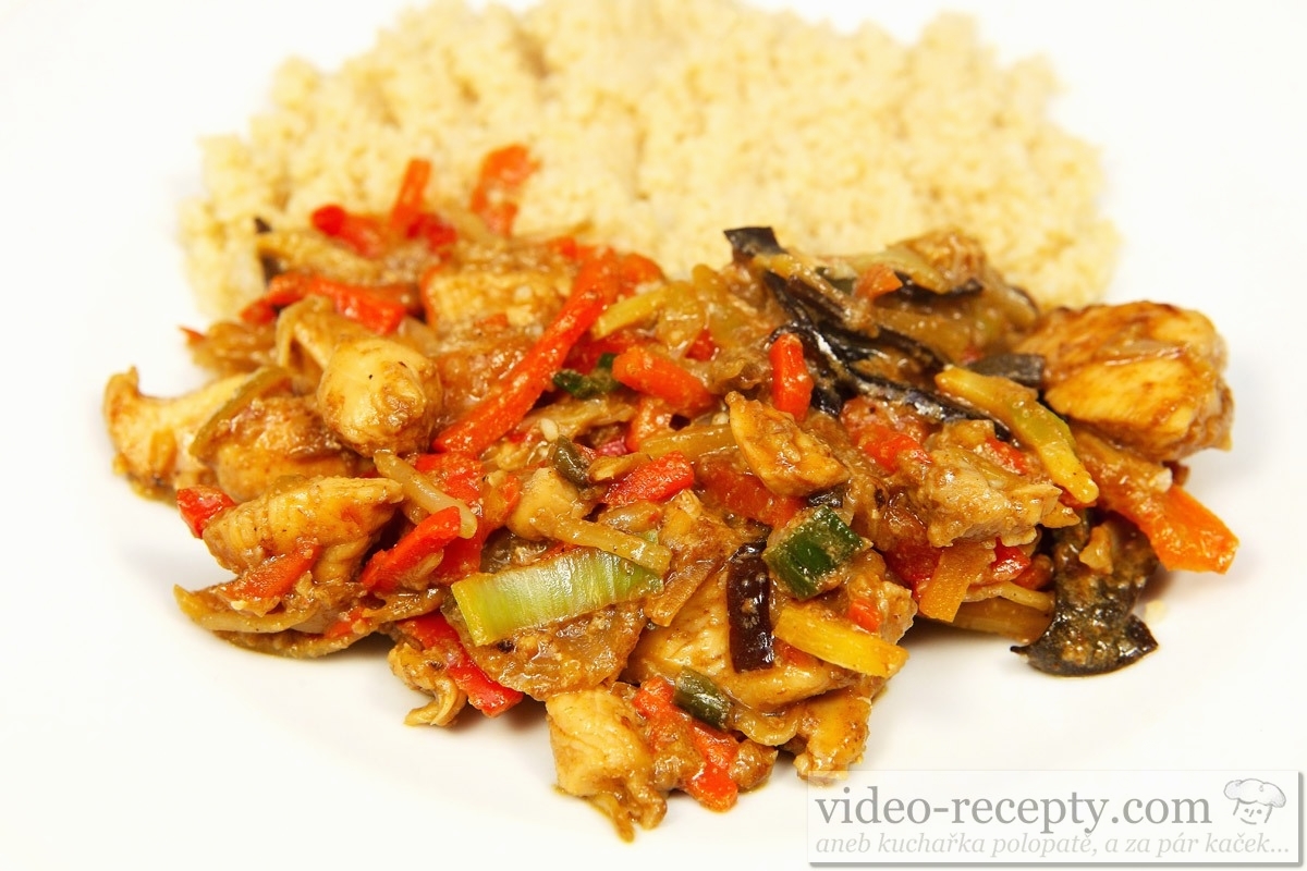 - Vložíme maso i s marinádou a restujeme do měkka. Při restování podléváme velmi malým množstvím vína tak, aby směs na pánvi byla pouze s neznatelnými stopami vody. Když je maso měkké, tak jej podle chuti dosolíme a přihodíme orestovanou zeleninu. Pokud pokrm není dost horký, pak jej mícháme a prohříváme, potom ihned podáváme.