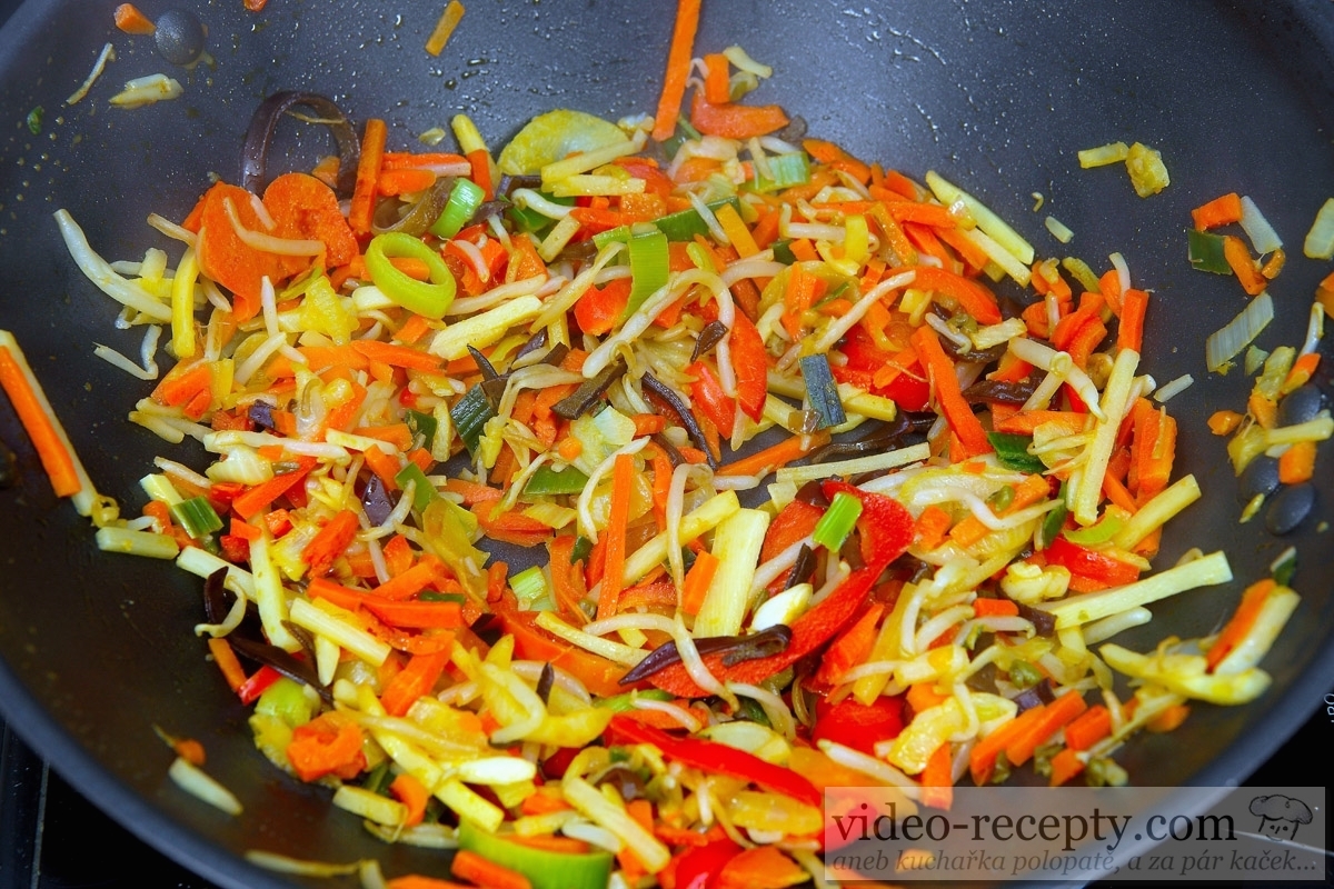 | zelenina čerstvá | nebo mražená {text:"Použít můžeme mrkev, klíčky fazolí mungo, papriku, pórek, cibuli, bambusové výhonky atd.Také můžeme použít mraženou zeleninu na asijskou pánev s obsahem jidášova ucha a podobně. Jelikož se tato balení dělají většinou 350 až 400 g, pak je to pro tento pokrm nejvhodnější volba."} |