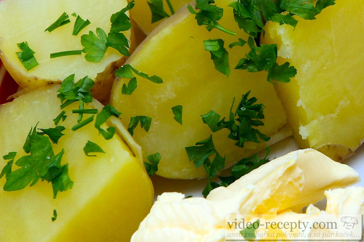 - Brambory i se slupkou krájíme na menší kousky a podáváme posypané sekanou petrželkou nebo pažitkou a kouskem másla. Slupku potom samozřejmě nejíme, tvoří jen servírovací ozdobu.