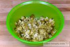 - Nyní vmícháme v sítu okapaný sterilovaný hrášek. Vmícháme jej velmi opatrně, abychom kuličky nerozbili.