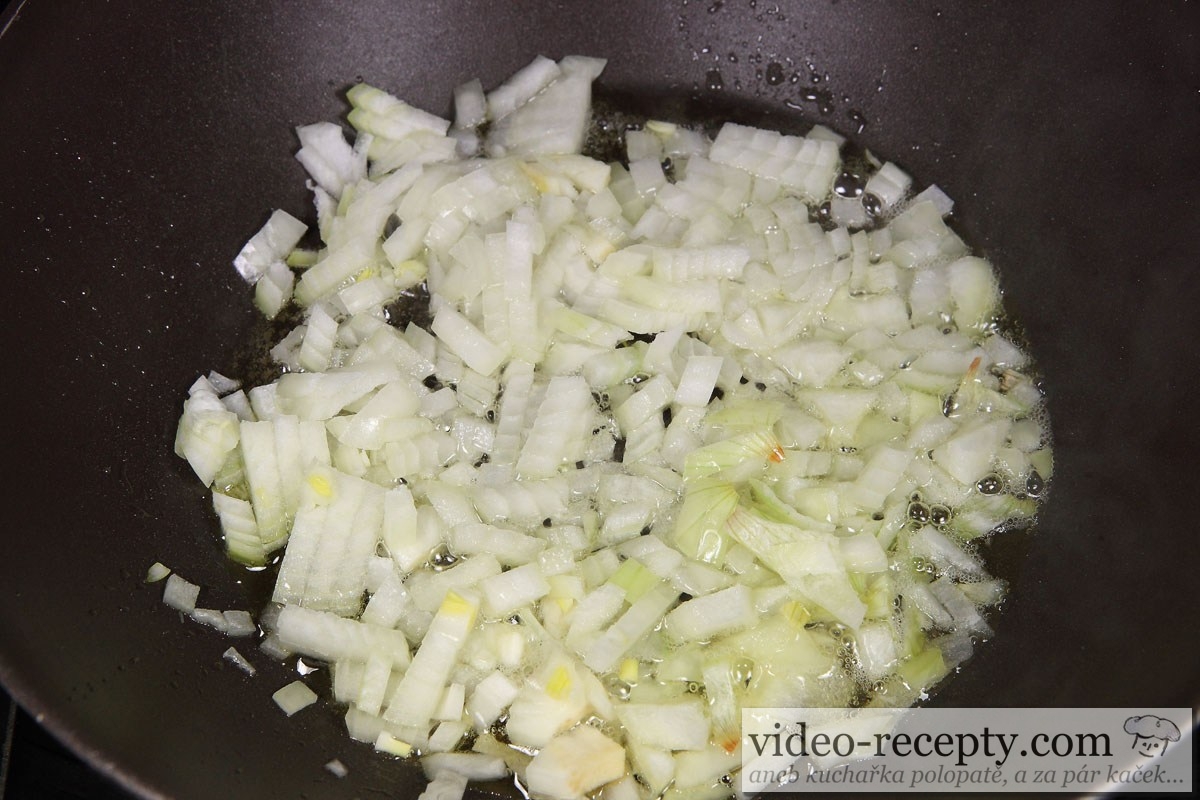 - Cibuli nakrájíme na plátky a orestujeme na sádle do růžova. Daváme pozor, aby se nepálila, proto volíme nižší teplotu - kolem 120° C.