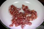 - Maso nakrájíme na menší kousky a hodíme jej na rozpálenou pánev s teplotou 120 °C.
