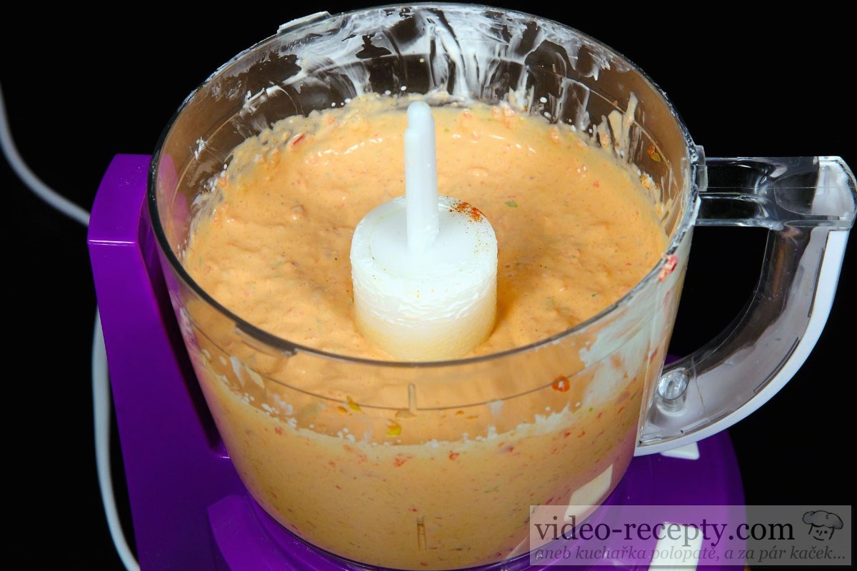 - Do mixeru dáme jarní cibulku, papriku a rozsekáme.