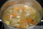{text:"Použít můžeme i další druhy zeleniny jako například květák, brokolice, kukuřice. Celkově doporučujeme cca 400 gramů + cibule."} - Přidáme obrané maso, vodou dolijeme na 2,5 litru, ochutnáme a dosolíme.