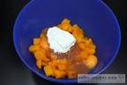 - Dýňovou náplň vlijeme do formy a rovnoměrně rozetřeme.