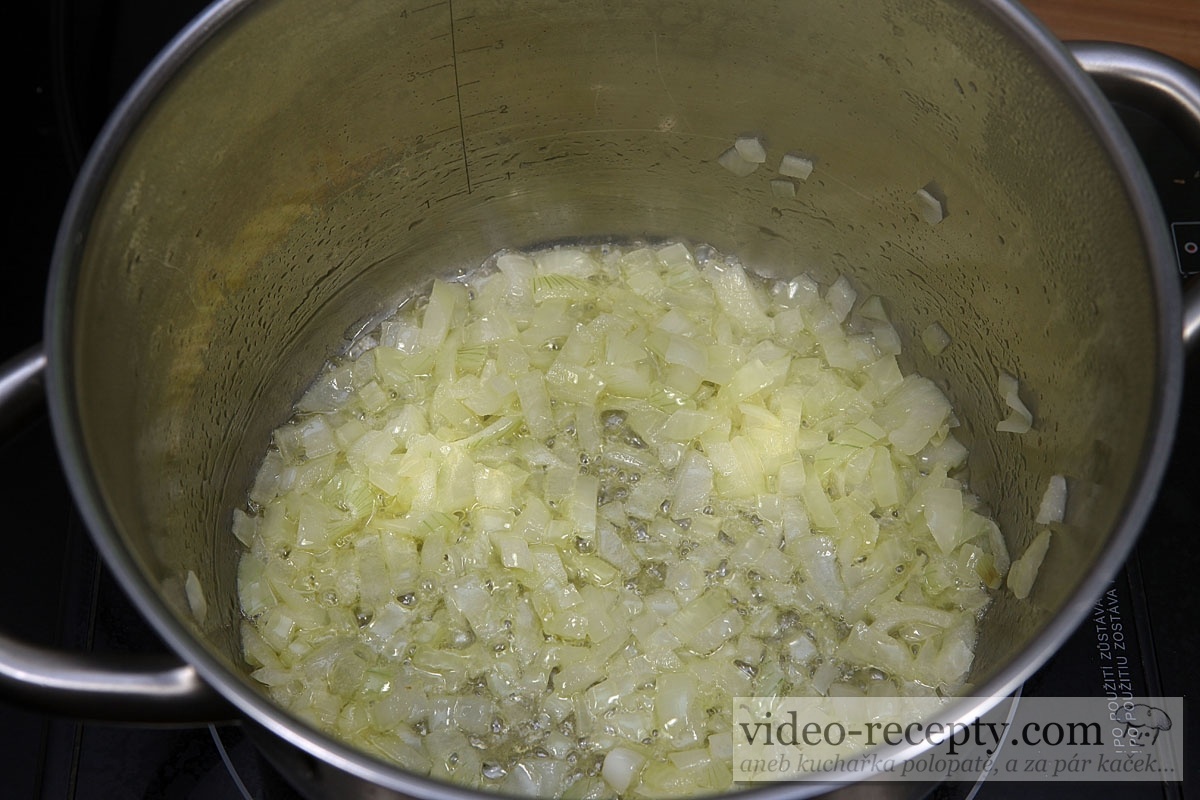 - Koprovou polévku zahájíme rozpuštěním másla v pětilitrovém hrnci. Na něm orestujeme velkou cibuli nakrájenou nadrobno.
