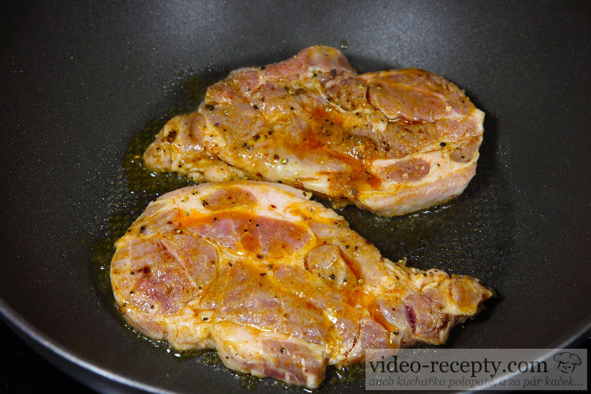 - Plátky krkovice osolíme a obalíme v hladké mouce.