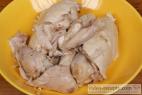 - Vychladlé maso obereme. Maso na omáčku nakrájíme na menší kostky asi 2 x 2 cm.