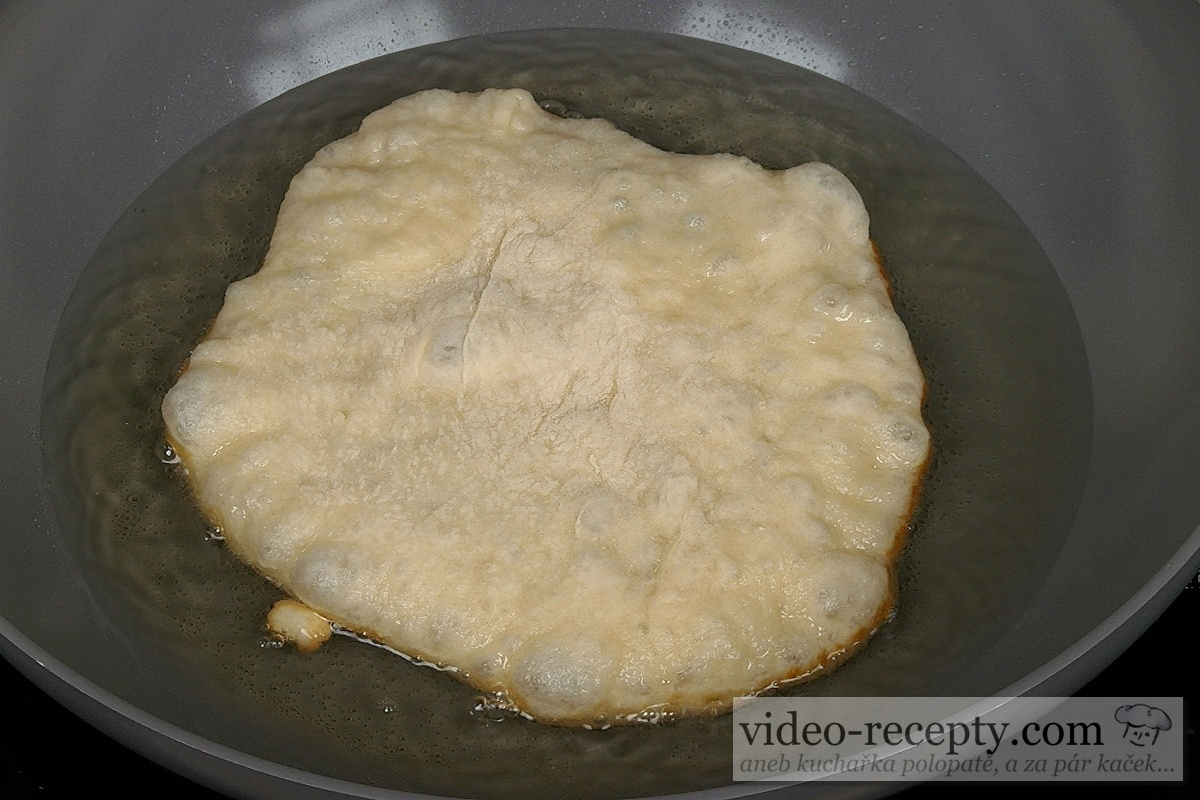 - Bochánky trochu zapracujeme a připravíme si pánev s olejem. Ten rozehřejeme na 120 až 140°C, vhodíme do něj kousek langoše a jak začně šumět, vložíme langoš.