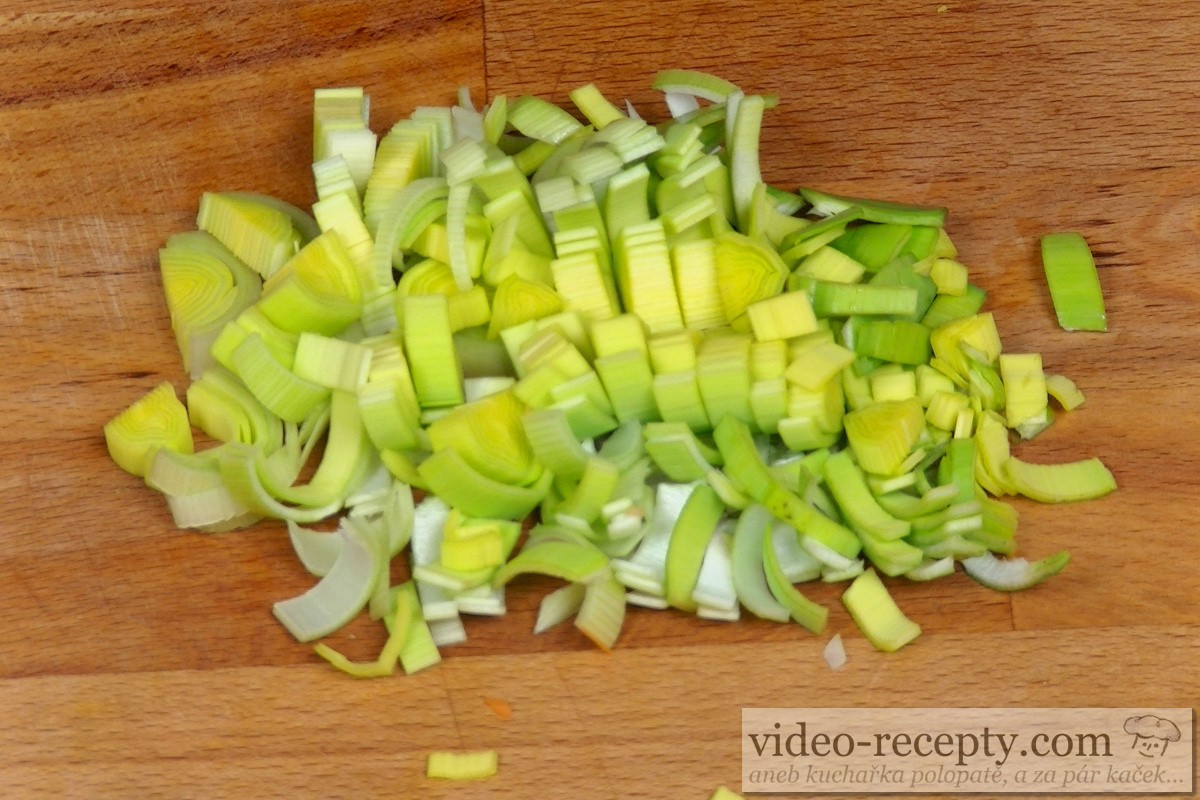 - Mezitím si nakrájíme vuřty, nebo jakoukoliv uzeninu podle chuti. Dále nakrájíme cibuli, mrkev a pórek.