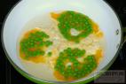 - Do 150g rozmrzlého hrášku přihodíme 3 vejce, přidáme 1/3 lžičky soli a opatrně vše rozmícháme.