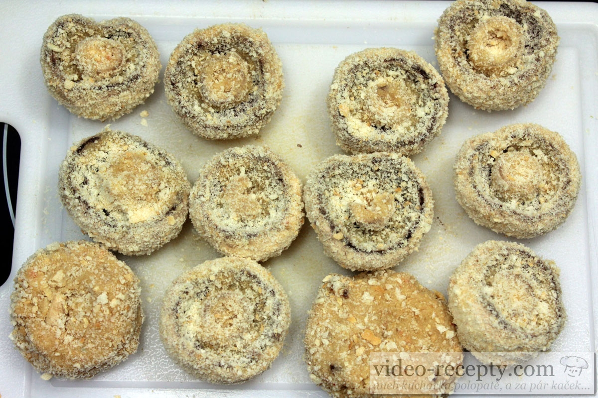- Ve směsi obalte žampiony ze všech stran a potom je obalte ve strouhance.