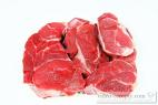 - Pečenou kližku na česneku začneme tím, že maso rozkrájíme na plátky o síle asi 10 až 15 mm. Všechny tučné a nevhodné kousky odstraníme.