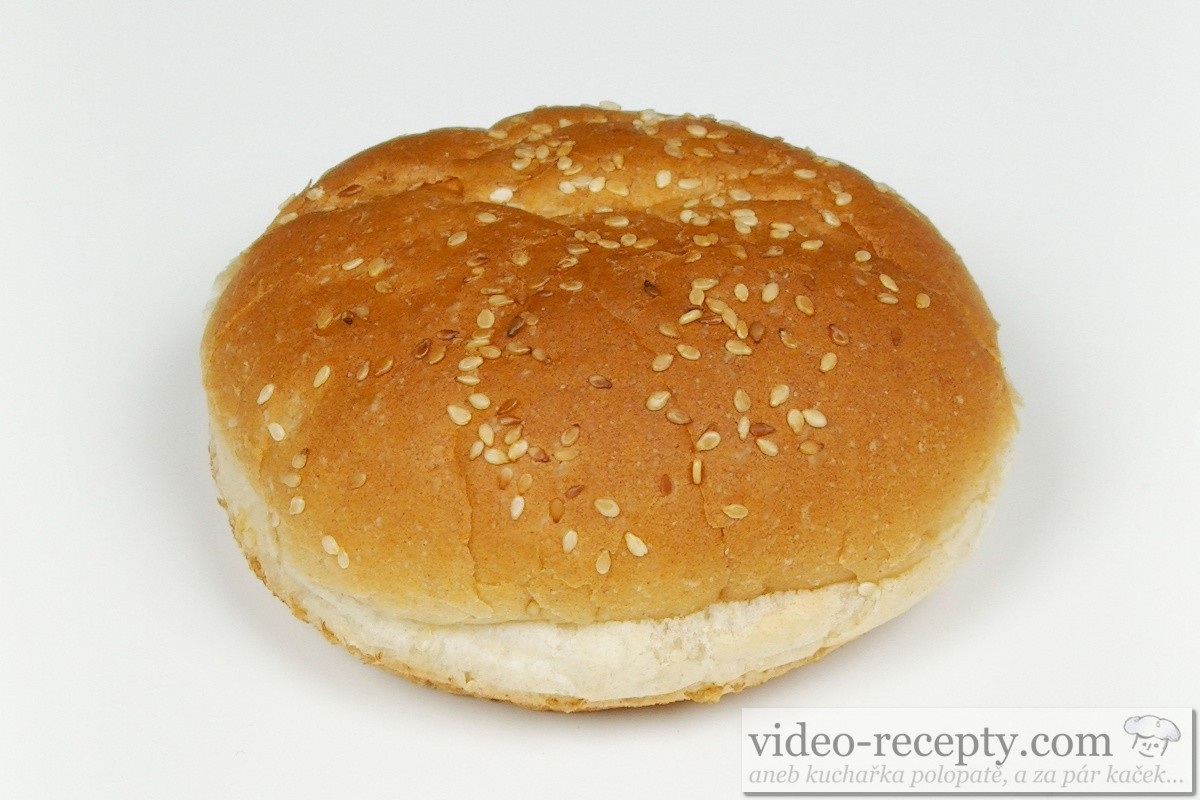 - Na horní díl bulky dáme lžičku hořčice, lžičku sladkého kečupu, kolečka cibule, plátky rajčat, 2 lžíce ledového salátu, plátek sýra, plátek masa přímo z plotny a uzavřeme spodním dílem bulky.