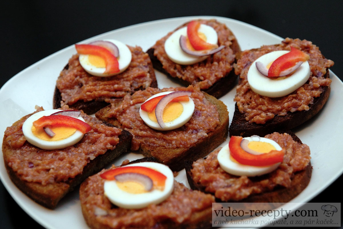 Maso ze svíčkové se také dá dobře utřít nožem a ostatní ingredience do něj vmíchat nadrobno nakrájené.