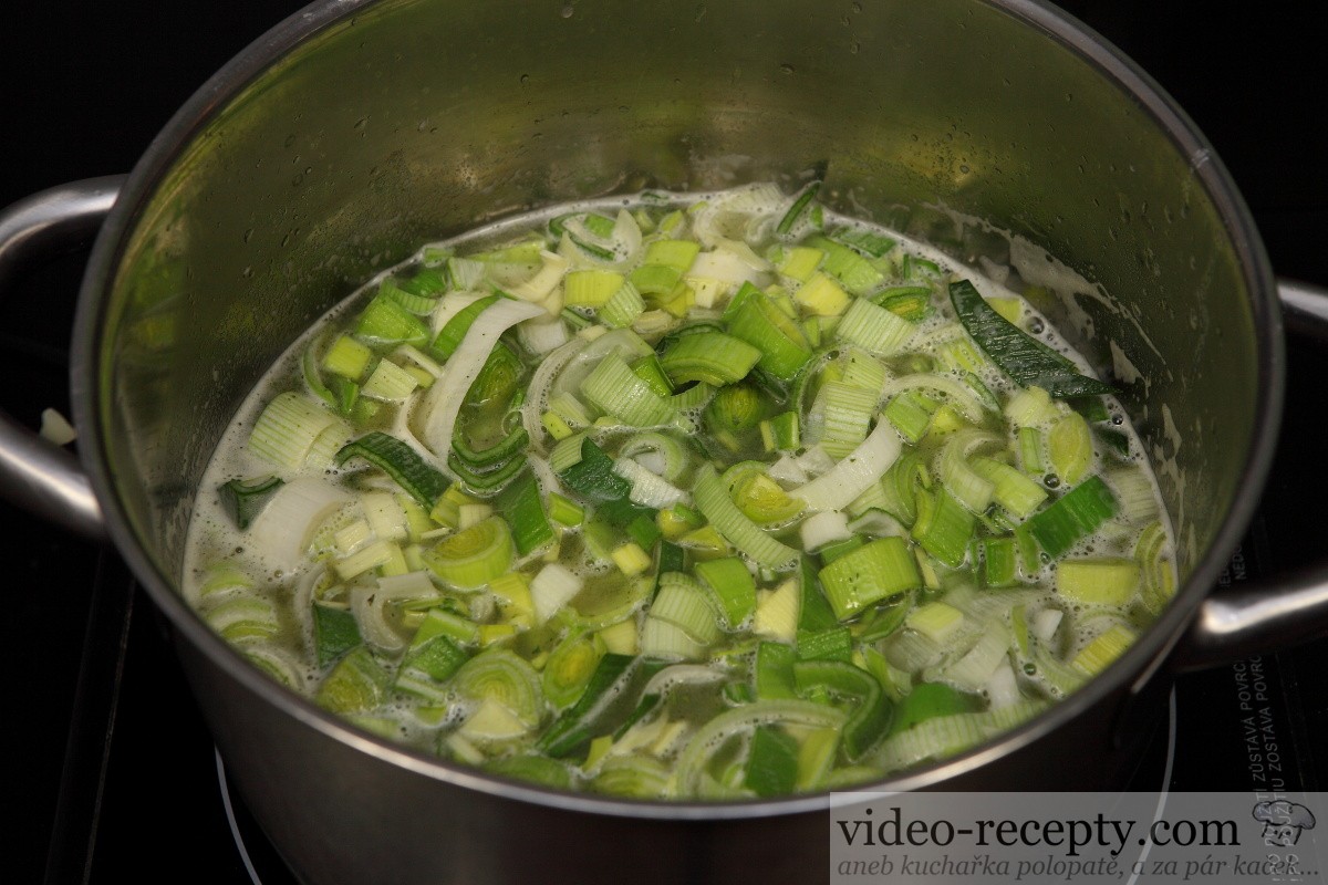- Když je pórek měkký, tedy asi za 10 minut, tak vše rozmixujeme ponorným mixerem.