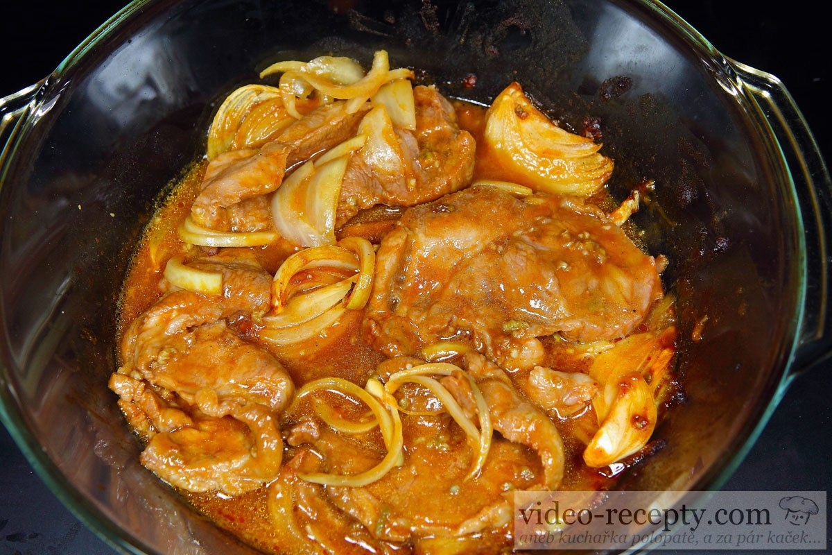 - Vše promícháme a plátky krkovice necháme z marinády trochu koukat.