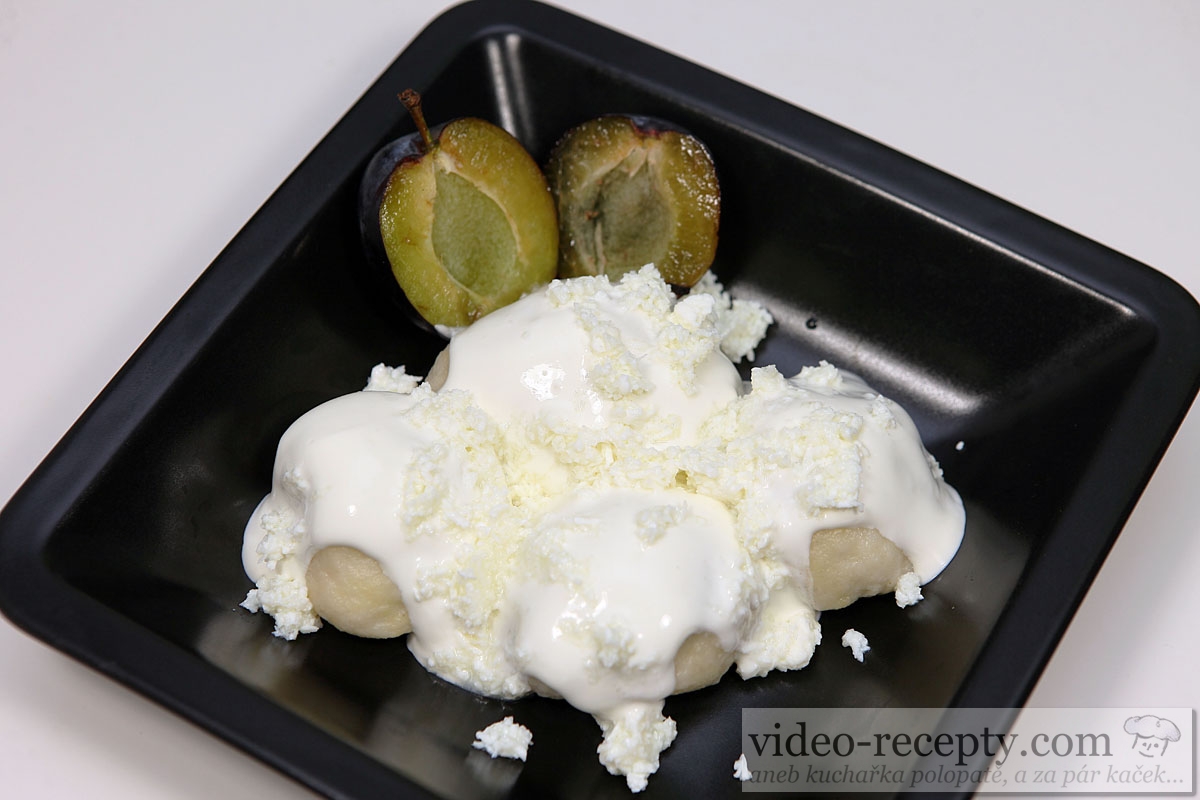 Švestkové knedlíky s tvarohem a smetanovou polevou
