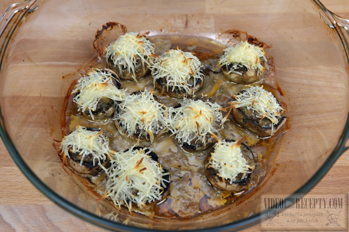- Žampiony oloupeme, nohy odstraníme a vnitřek lžičkou vydlabeme. Dáváme pozor, aby klobouk nepraskl. Vydlabanou směs můžeme zamrazit a použít do jiného pokrmu, nebo pokud máme málo masové směsi, tak zbytky žampiónů nasekáme a vmícháme do masa.
